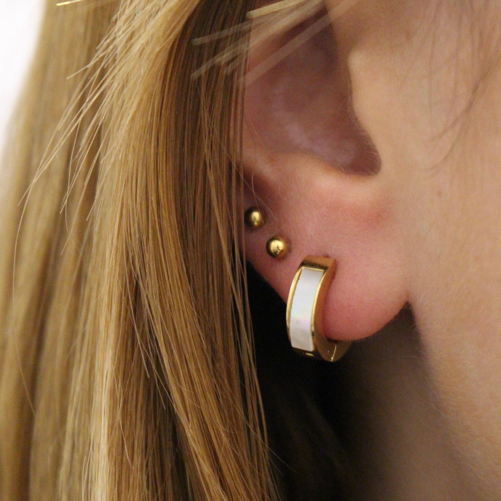Clássicas, com um toque de luz. As argolas recebem um detalhe em madrepérola: material natural extraído do interior das conchas, conhecido pelo seu brilho nacarado e reflexos suaves. Uma peça delicada e elegante, que ilumina qualquer look.