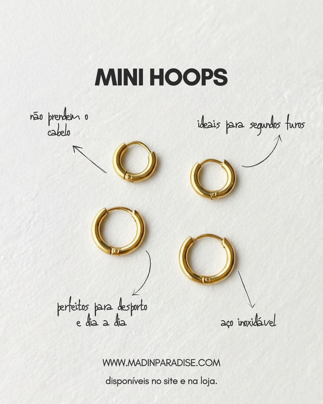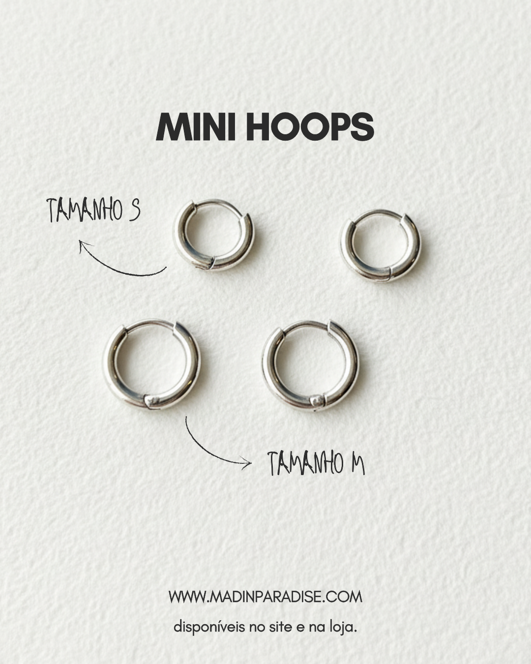 Disponíveis em três tamanhos e nas cores dourado e prateado, elas são o toque discreto que nunca sai de moda. Vendido à unidade.