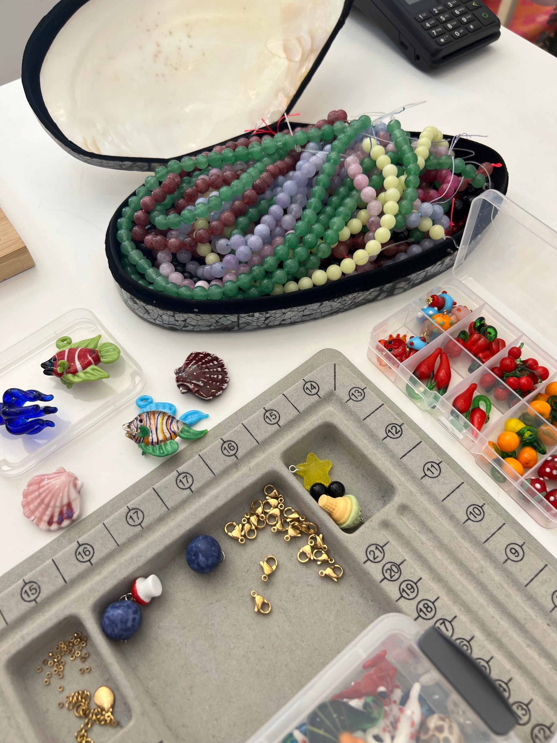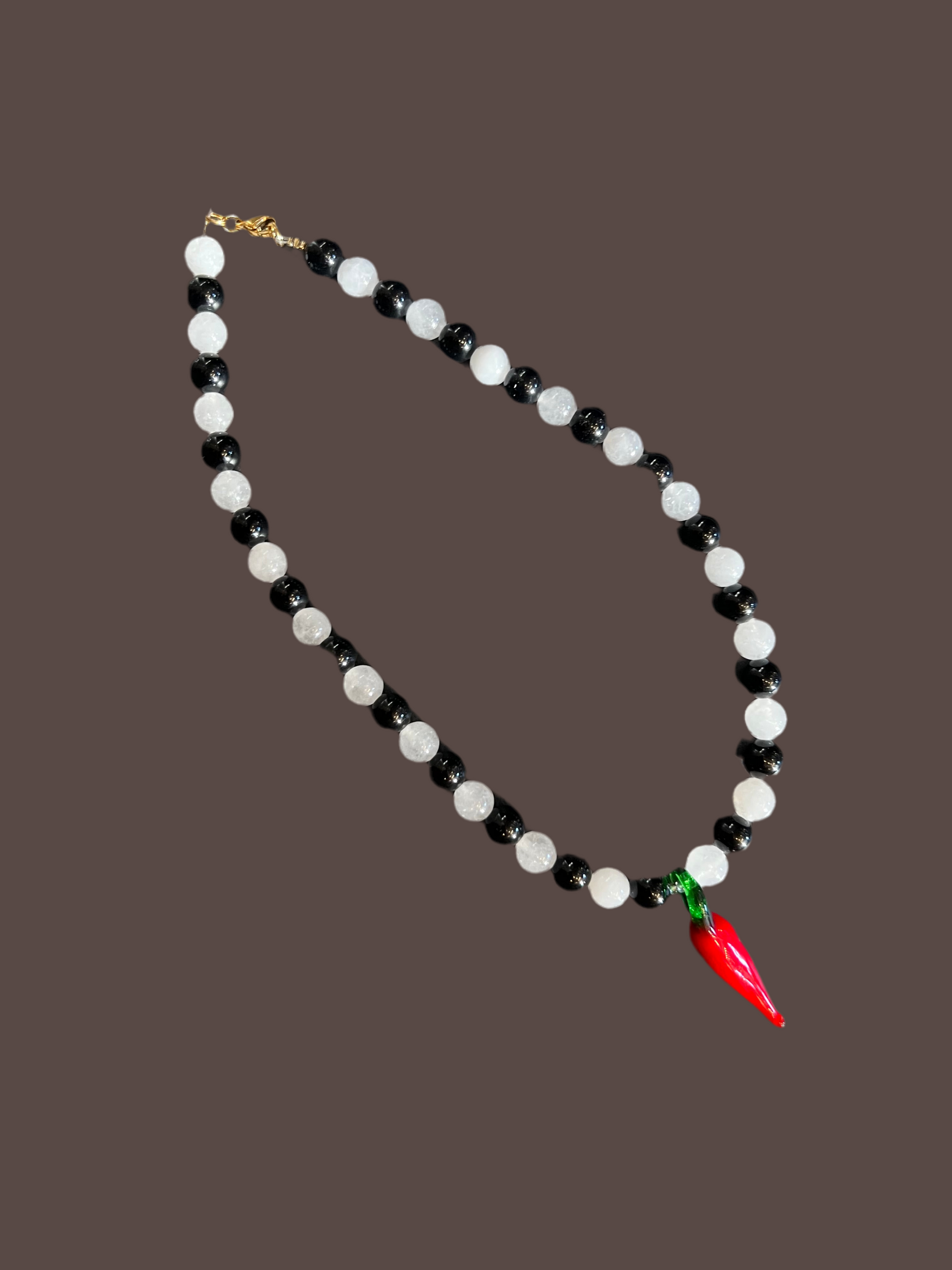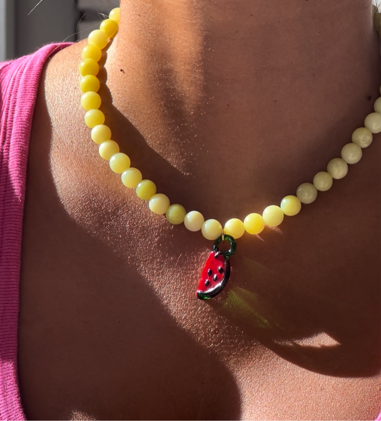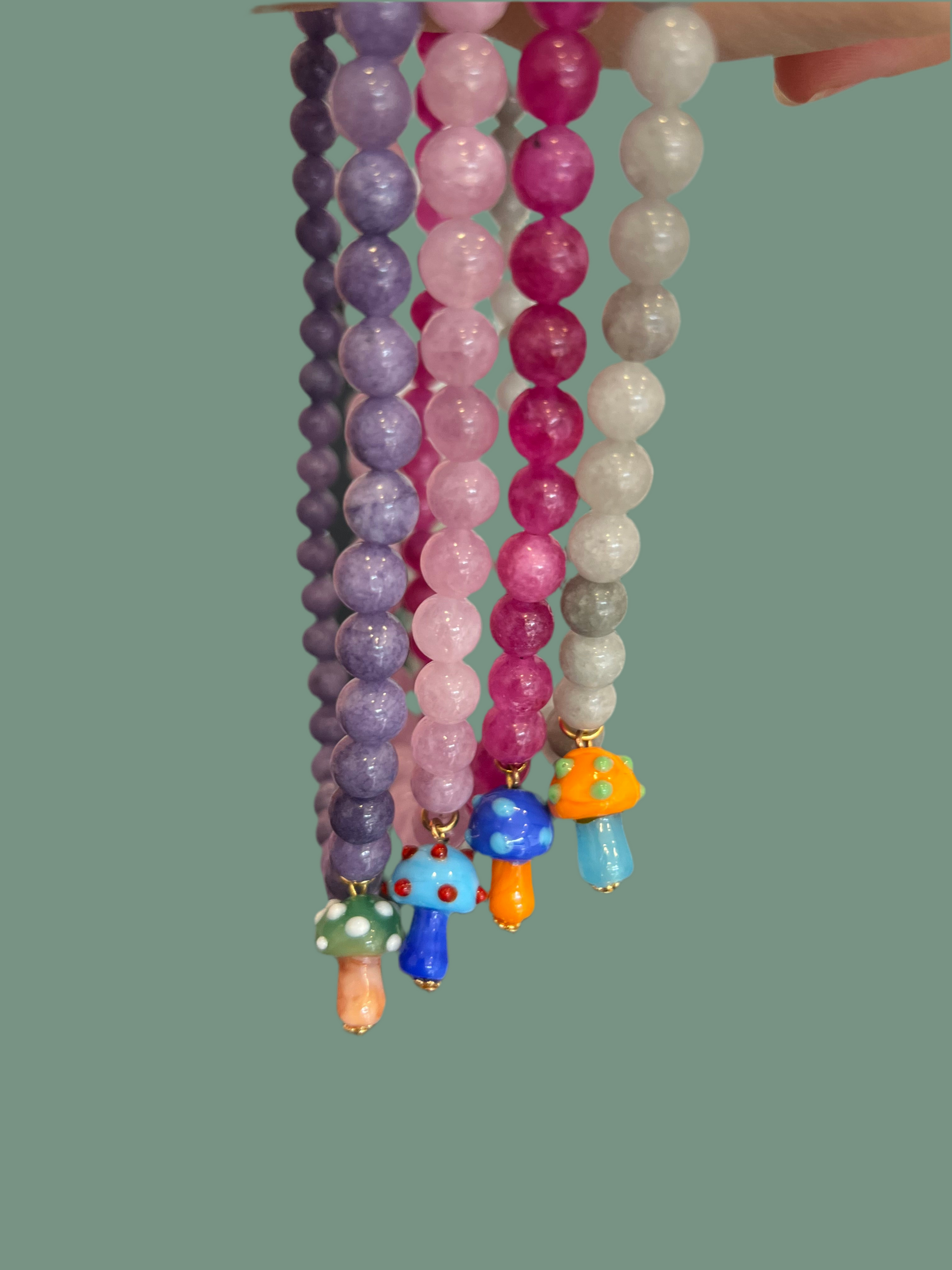Cada Boogie Necklace é uma peça única, criada à mão com pedras semi-preciosas cuidadosamente escolhidas e com pendentes em vidro ou resina, que refletem diversão e a tua personalidade.