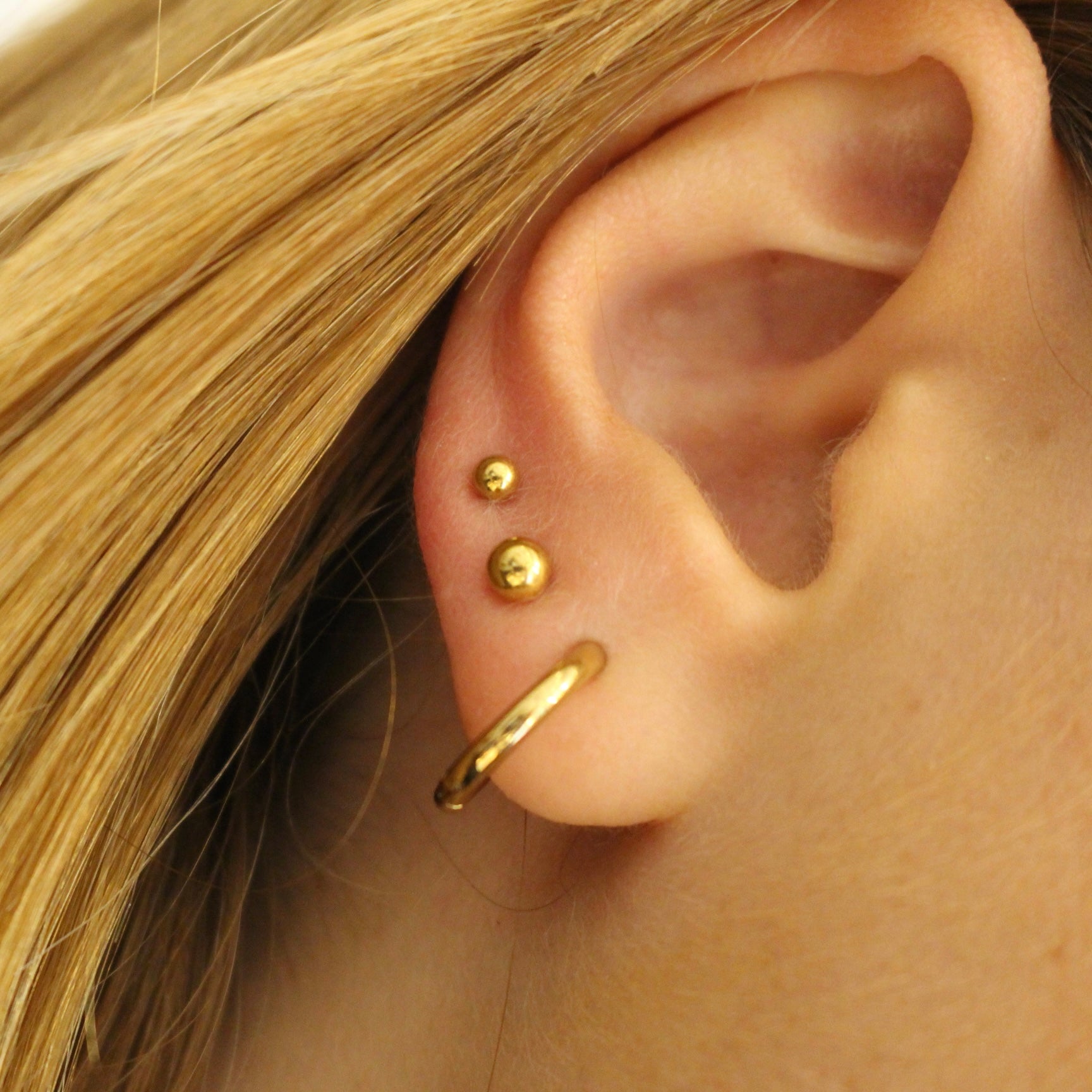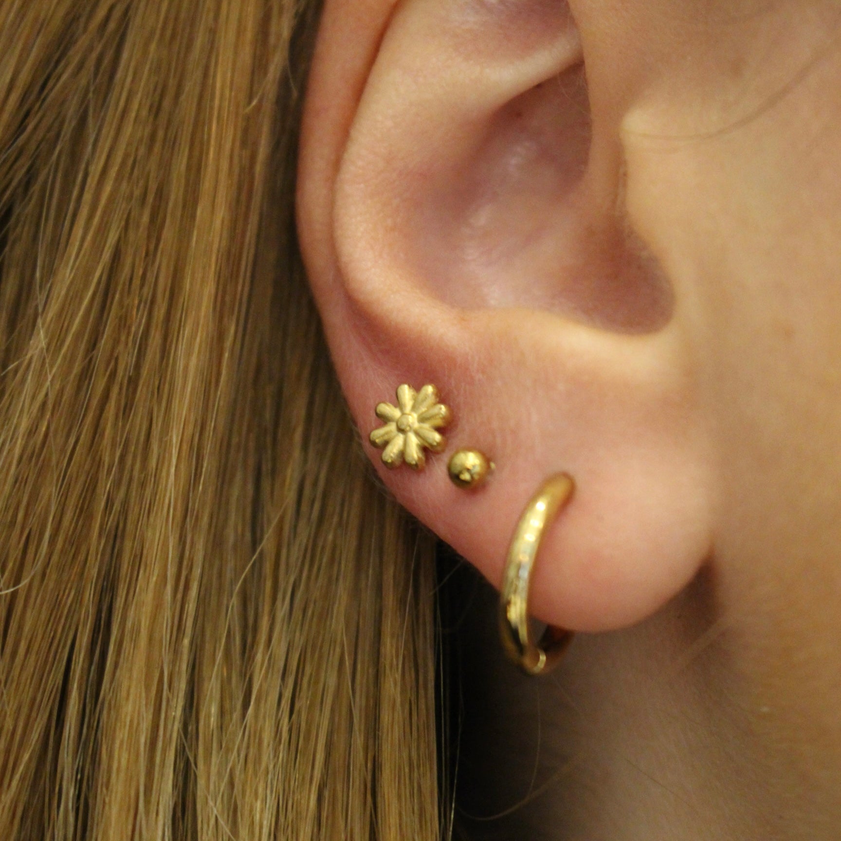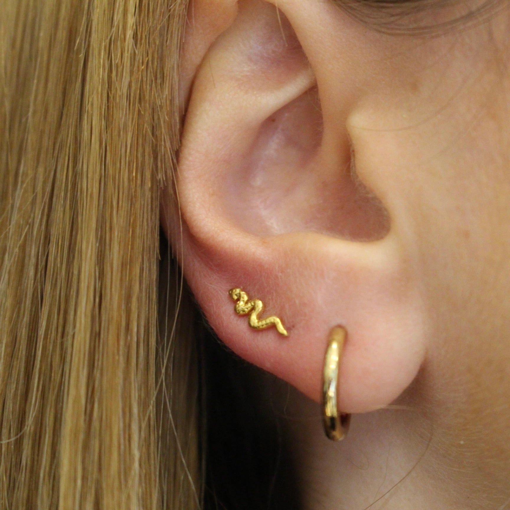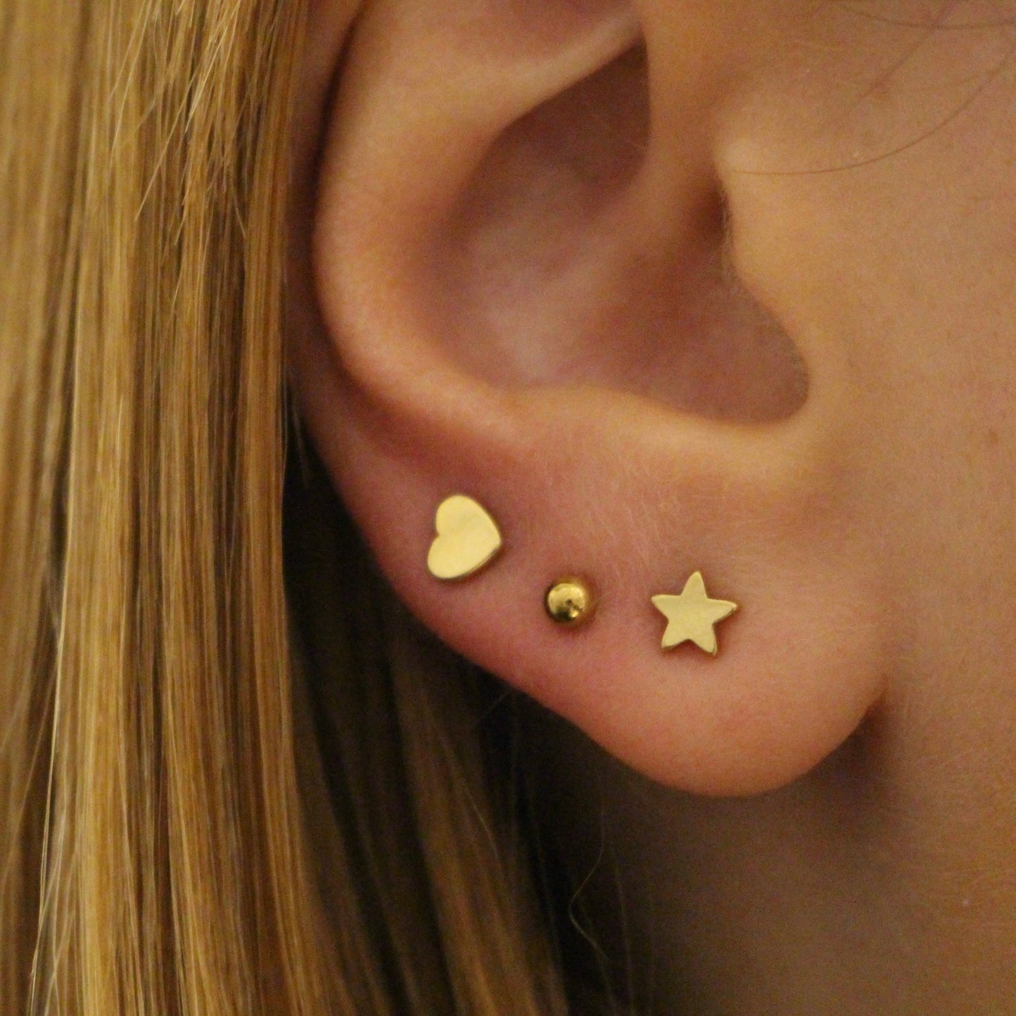 Disponíveis em várias opções: bolinha (dois tamanhos), coração, flor, estrela e cobra, estes brincos são ideais para o segundo furo, adicionando personalidade sem perder a subtileza.